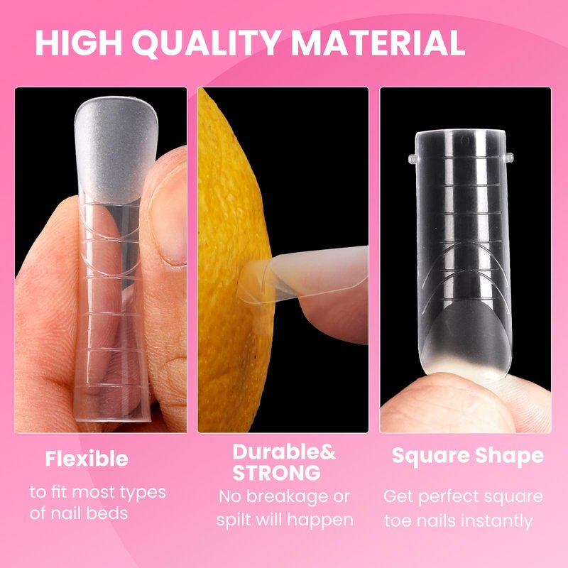 - FLEXIBLE & DURABLE: Our polygel toenail forms are crafted from high-quality PMMA material, offering flexibility to accommodate various nail bed sizes. They are exceptionally durable, designed for repeated use, and strike the perfect balance—not too thin or too thick—for a natural and comfortable wearing experience. Ideal for both professional use and DIY nail art at home