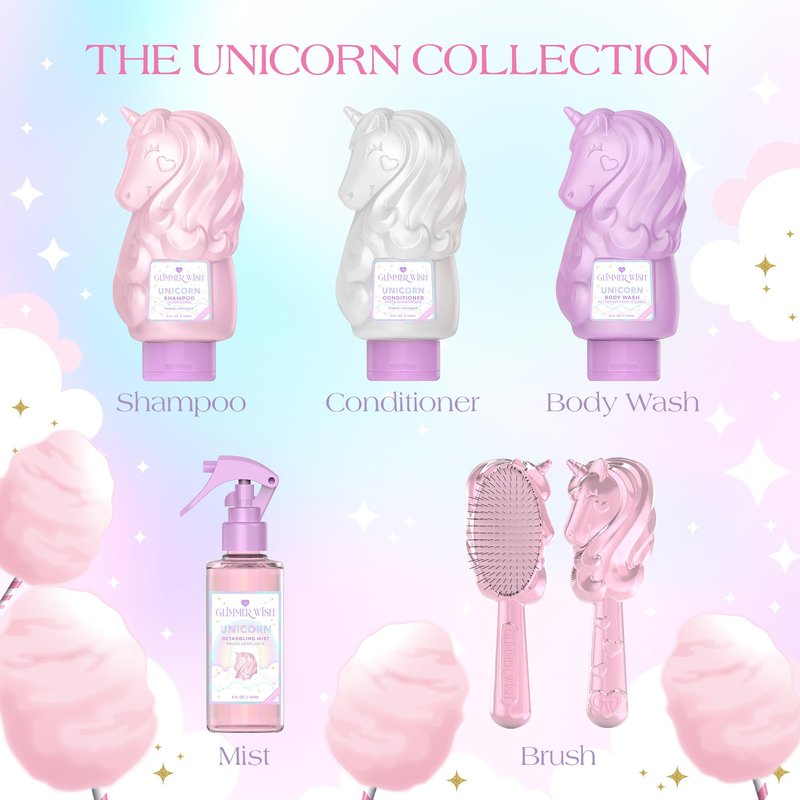 - All Unicorns Agree - Keeping your hair clean is fun and oh so magical with Glimmer Wish! Our unicorn conditioner for kids will leave hair conditioned and smelling delicious! Always vegan, paraben, PEG and sulfate-free, our formula is also cruelty and gluten-free. Dermatologist tested, and always clean and safe for all unicorns!