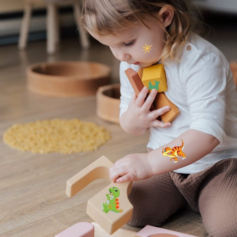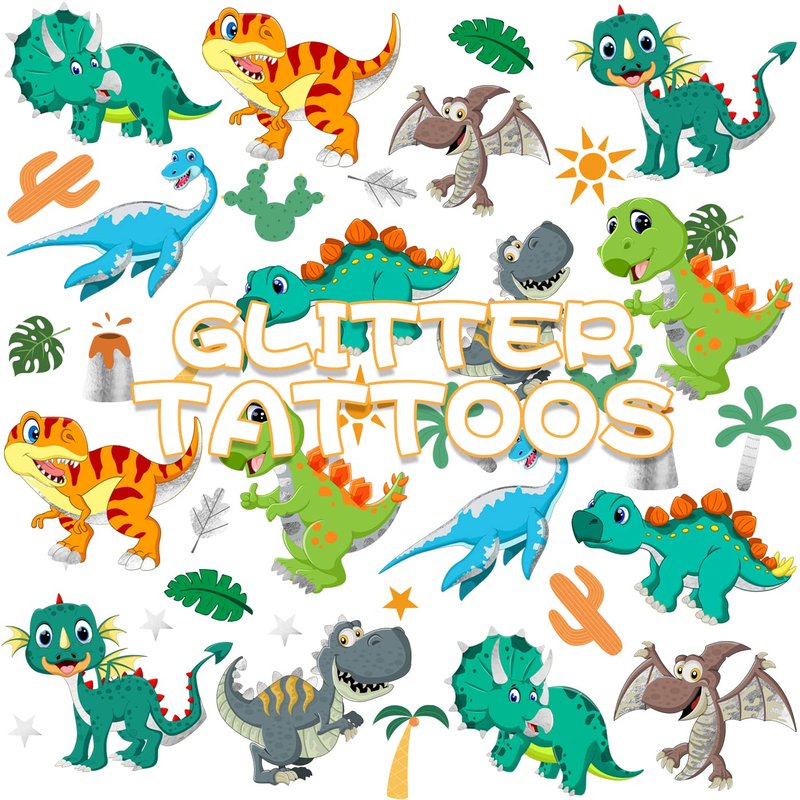 - Cool Gift For Kids: Popular hit with the kids. These silver glitter Dino tattoos are perfect for a dinosaur birthday party! You can choose the pattern you like and create your own style.