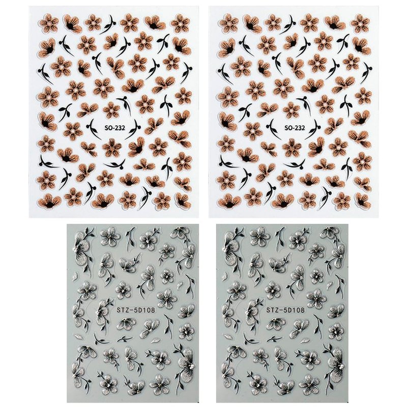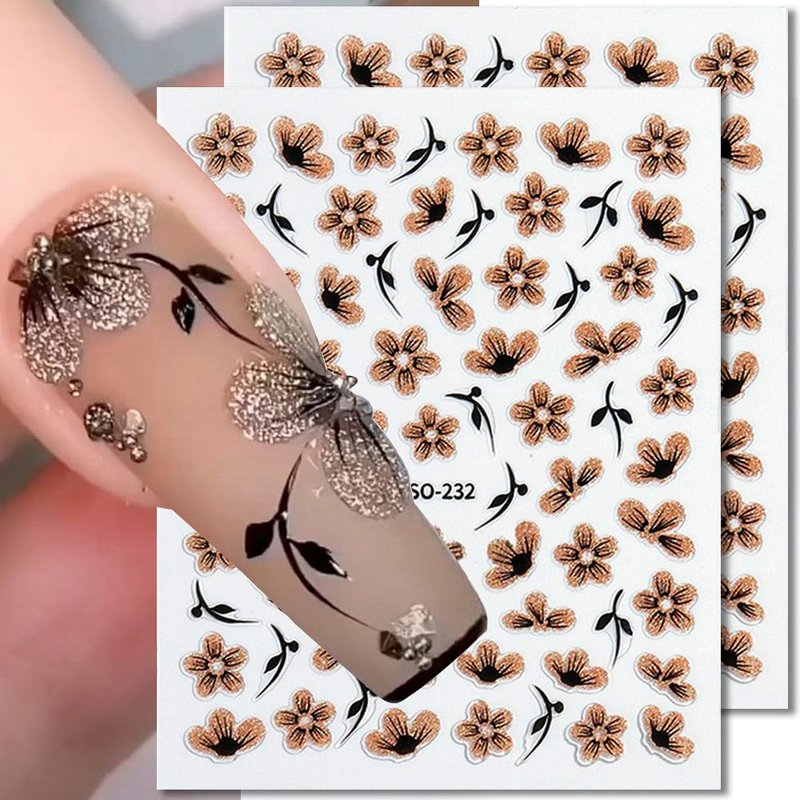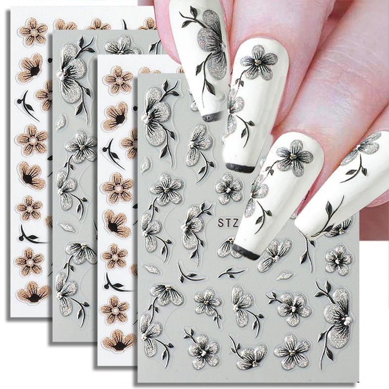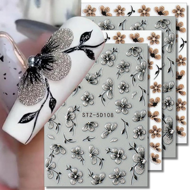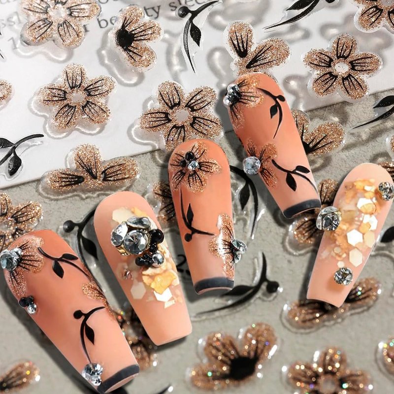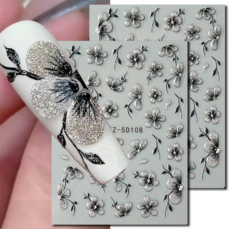 - Glitter Flower Nail Art Stickers 5D Black Silver Flower Nail Stickers 3D Black Gold Flower Stickers for Nails Floral Nail Decals For Nail Art Supplies Jelly Blossom Sticker Nails Petals Nail Decor
