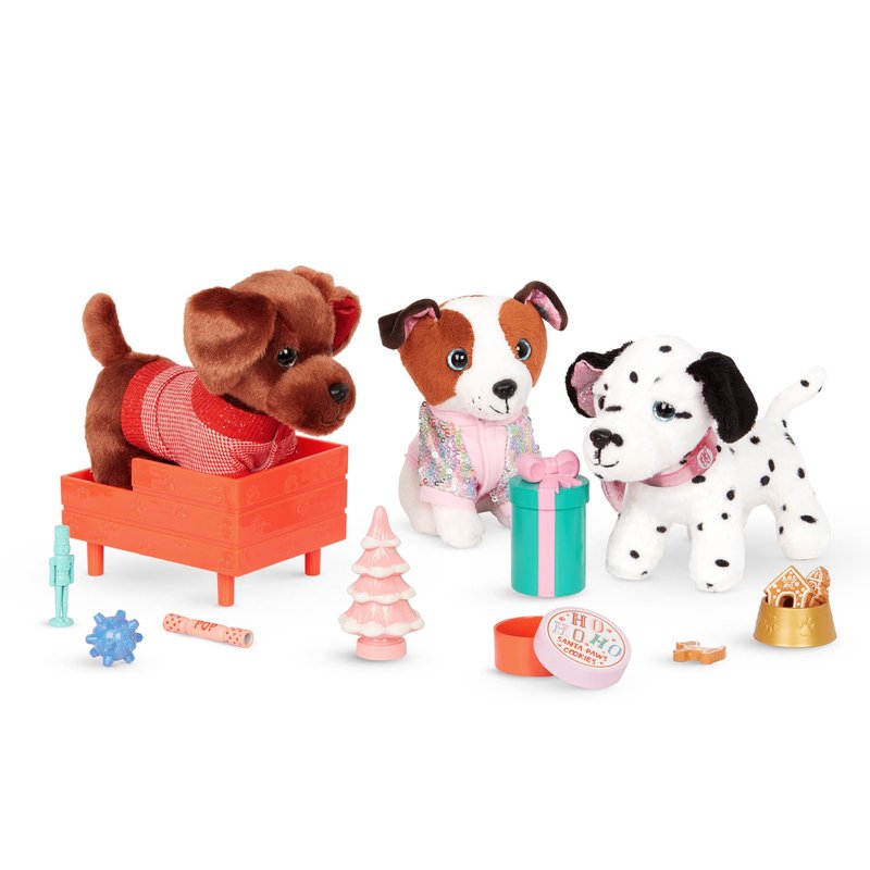- Warm Up with Cocoa: Bring Cocoa home for the holidays with a festive holiday pup playset with accessories for cuddling and celebrating together! (Dolls sold separately).