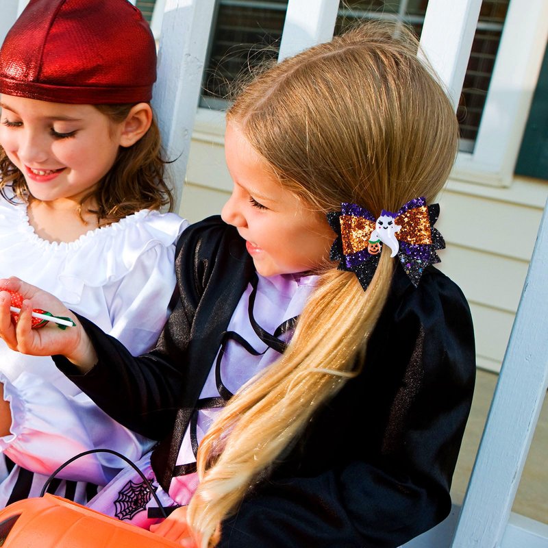 Sparkly Halloween Theme: Each hair bow features a glittery bat and ghost ribbon design, making them the perfect accessory to complement your Halloween costume or add a festive flair to your everyday outfit.