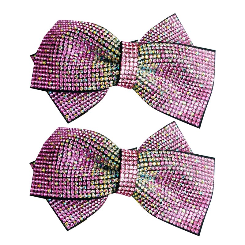 Glitter Handmade Crystal Beads Bow Hair Barrettes Rhinestone Bowknot Hair Barrettes for Thick Hair Chic Bling Butterfly Hair Clips For Styling Long Hair,2 Pack (Pink)