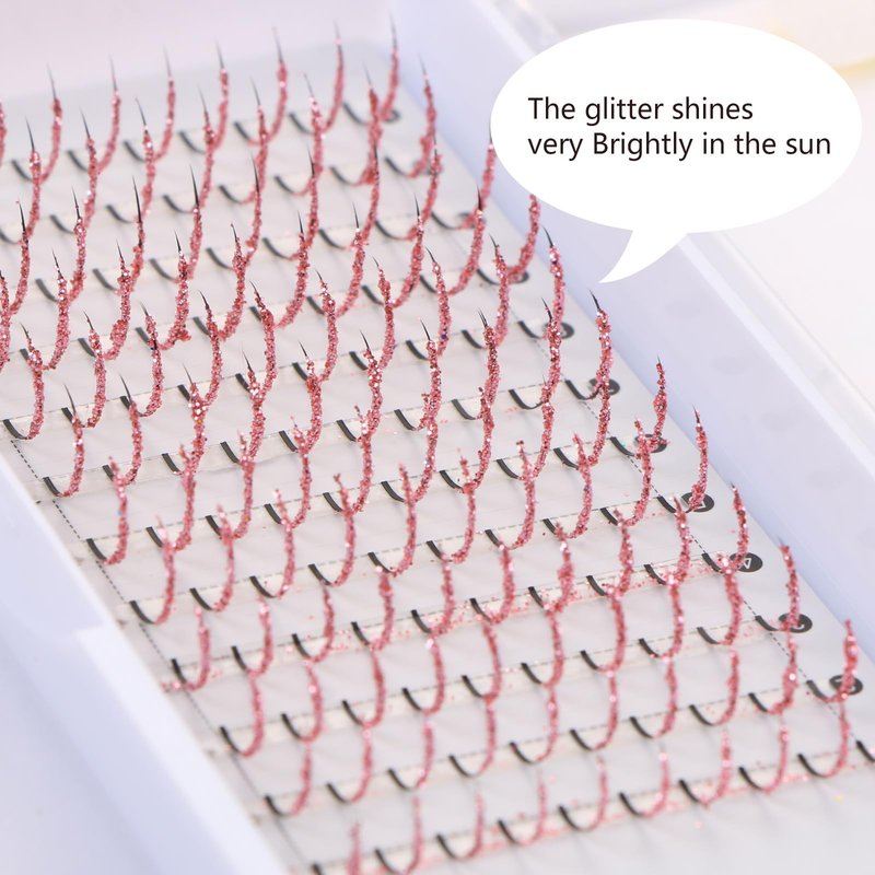 Glitter Lash Extensions, UHOMENY False Lashes for Eyelash Extensions D Curl Cosplay Eye Lashes Single Lash Spike Eyelash Extension Party Makeup Eyelashes, Mix 11-16mm (pink)
