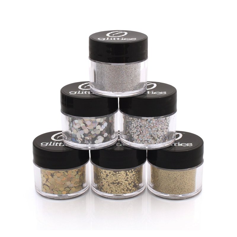 GLITTIES - (6PK) - Holographic Gold & Silver Glitter Kit - Solvent Resistant & Great for Nail Art Polish, Gels, Acrylics Supplies - Quality Glitter Made in the USA! - (60 Grams)