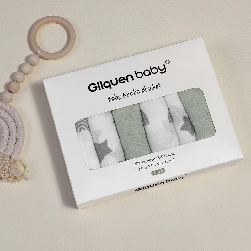 GLLQUEN BABY Receiving Blanket Boy Cotton Muslin Swaddle Blankets Girl Newborn Squares Breathable & Soft Thin Baby Blankets Cloths Double Absorbent Infant Swaddling Wrap - 6 Pack (Star)