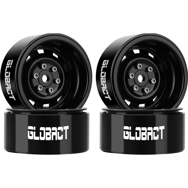 GLOBACT 1.9 Beadlock Wheels RC Wheel Hub for 1/10 TRX4 TRX6 Axial SCX10 I II III Pro Redcat RC Crawler Upgrade Accessories (4Pcs Black)