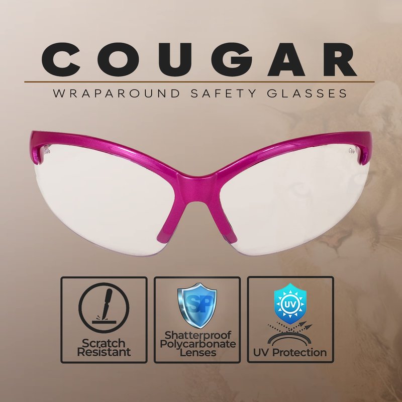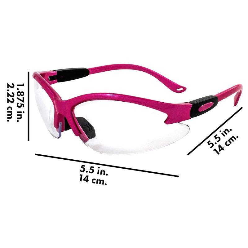 Global Vision Cougar Safety Glasses Nurses Dental Assistant Glasses Shooting Glasses for Women Ladies Men Pink Frame Clear Lens