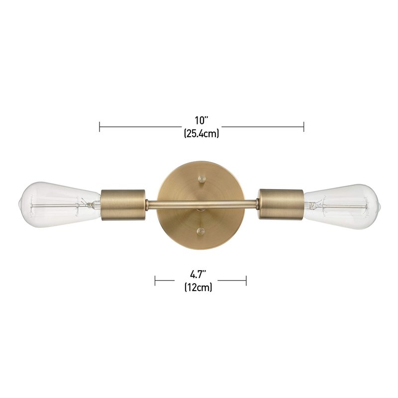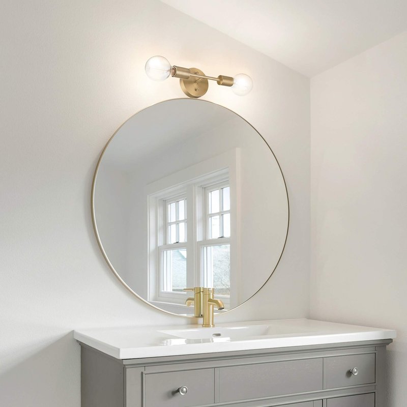 - MINIMALIST DESIGN: the super trendy matte brass finish of the Alexandria 2-Light Vanity Light is paired with an open socket construction and clean silhouette to showcase the wonderful world of minimalist design