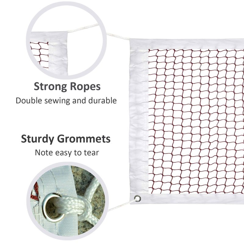 - The four sides of badminton net are covered with PE fabric, double sewing, attractive and durable.There are grommets at two bottom corners of the badminton net, easy to pull straight and fix.