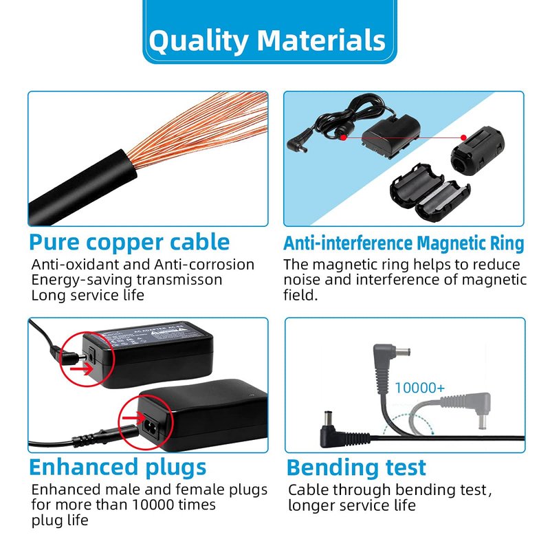 - 【Packing List】AC Power Transformer AC-E6, DR-E6 Power Connector / DC Coupler (LP-E6 LP-E6N Dummy Battery) and AC Power Cord (length:1.5M) Included.