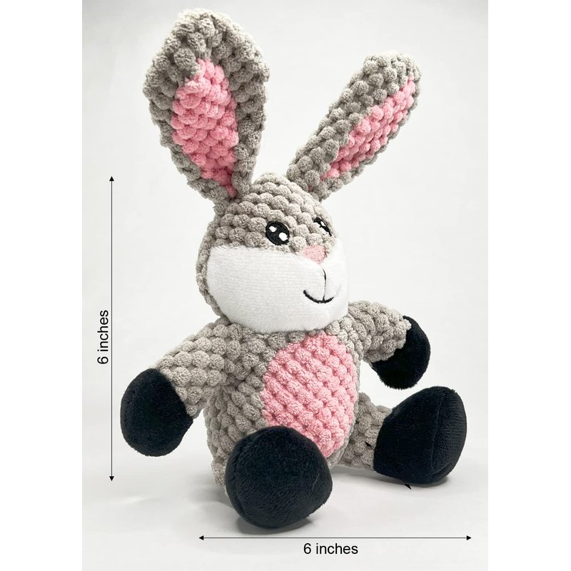 - Glory To Dog's Barnyard series reimagines the Rabbit a huggable toy for medium-sized dogs. The soft woven pineapple fabric texture is gentle on dogs' mouths, and the toy's multiple appendages make it easy to grab and shake. The toy is ideal for cuddling and snuggling, providing comfort to pups who love to snuggle with their toys. Made for energetic play with 100% safe, color-fast materials and no sharp or chewable plastic parts. Hand wash and air dry for easy cleaning.