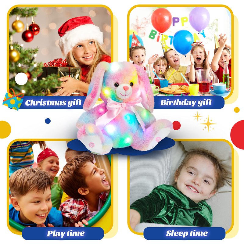 Glow Guards Bunny Plush Toy light up musical stuffed soft plush toy with night lights glow in the dark birthday holiday gifts for toddle kids boys girls.