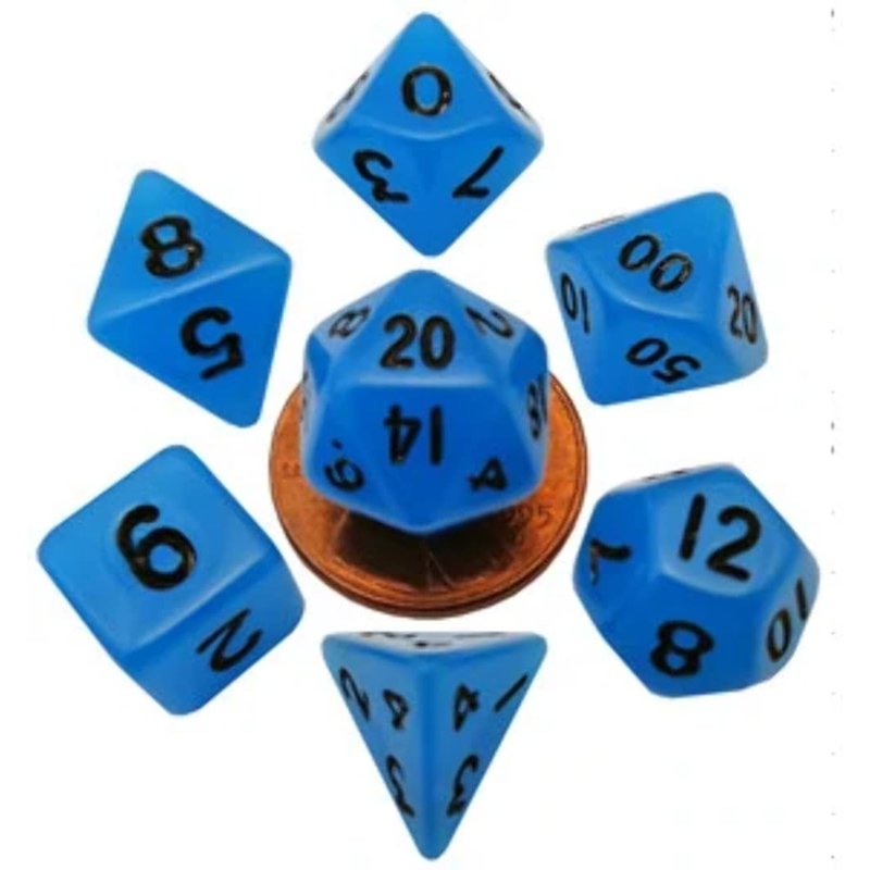 Glow in The Dark Blue 10mm Mini Polyhedral Dice Set