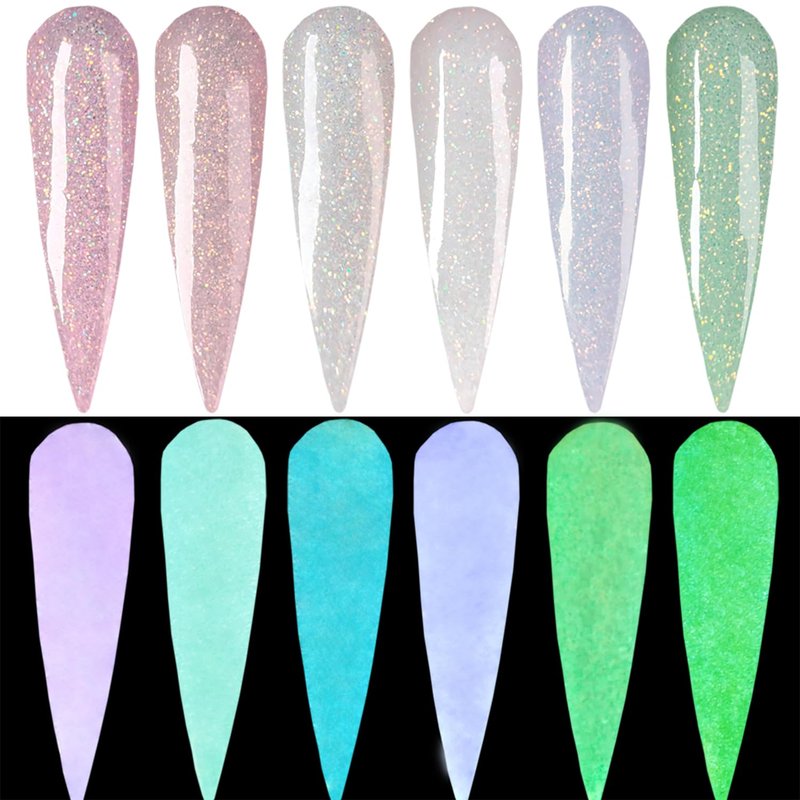 Glow in the dark Dip Powder Glitter Nail Dip Powder Kit 6 Colors Set for Starters (Dip Liquid Set Not Included)