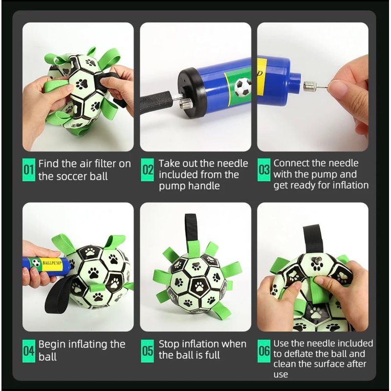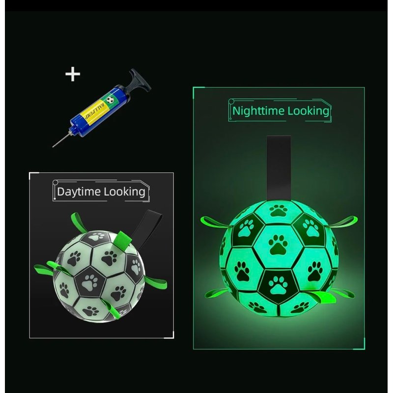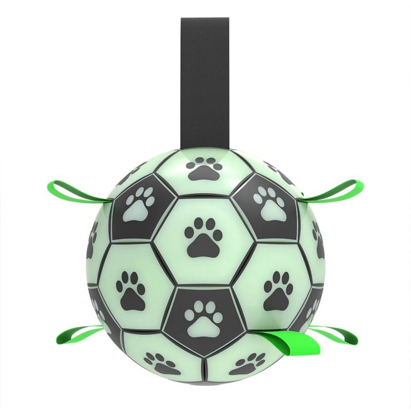 Glow in The Dark Dog Toy - Light Up Soccer Dog Ball, Interactive Pet Toy for Any Size - Indoor and Outdoor Use, Straps for Easy Grab (6 inch)
