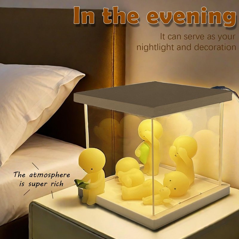 - [Charming Showcase]: This acrylic display case is designed specifically for your glowing figures, creating a cozy atmosphere. The warm LED light not only enhances the beauty of your collectibles but also charges them, allowing your glowing figures to maintain their unique fluorescence even after the lights are off.(Mini figures not included)