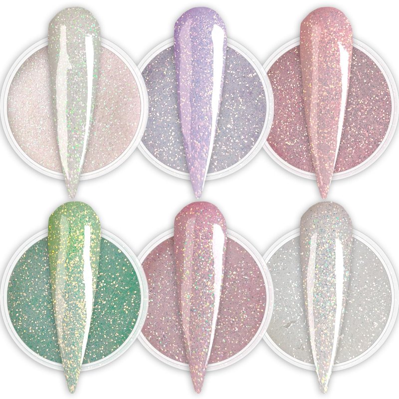 GLOW IN THE DARK Glitter Nail Acrylic Powder 6 Colors Set for Pink White French Nail Art Design