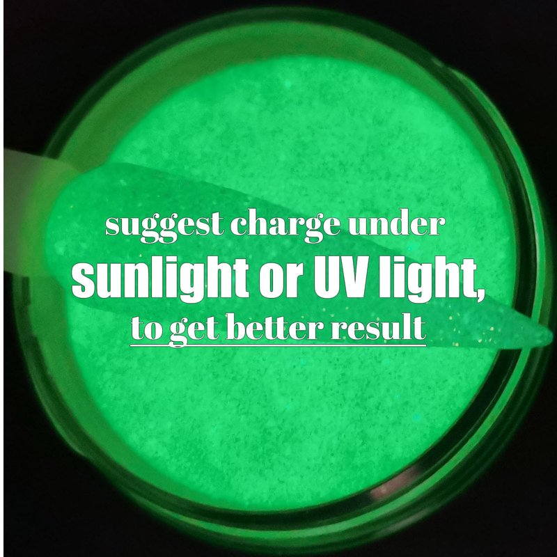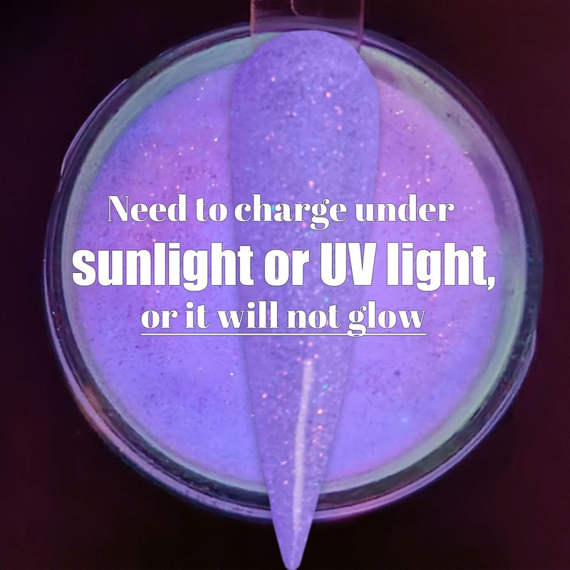 - ❤️Charge under UV light or Sunlight for 30~90seconds, it will brightly glow in darkness❤️【Notice: 】if you only charge the nails under Normal House Light instead of any sunlight or UV light, then it will not glow well.
