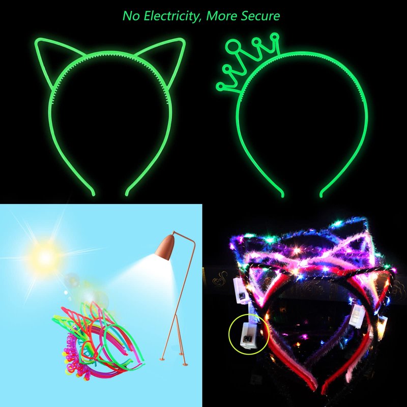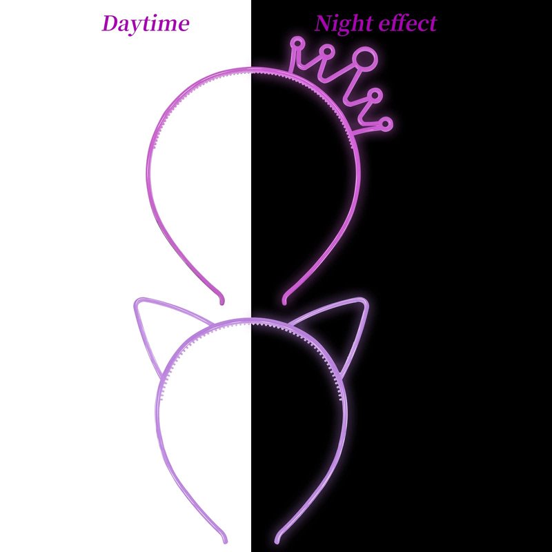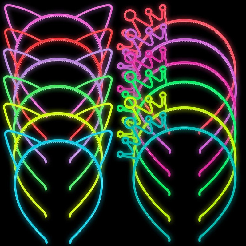 - What you will receive: You will receive 12 different colors of glow-in-the-dark hairbands in one package, 6 pcs cat ear head bands and 6 pcs crown birthday headbands enough to share with your friends and family.