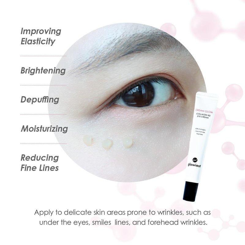 glowiest Dream Glow Collagen 82 Eye Cream- French Collagen eye cream Dark Circle under eye treatment korean eye cream, Glowing Day and Night Care Not Tested on Animals -0.7oz./20g