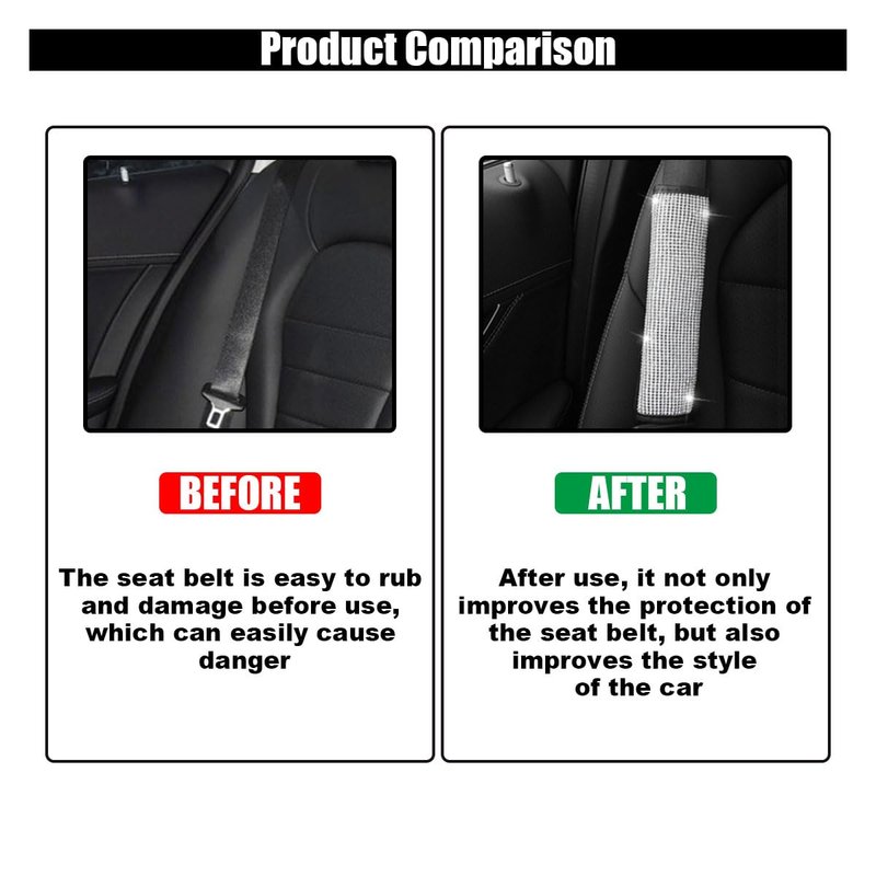 - 【Unique Design】:The car seatbelt protector features a diamond-encrusted design that can sparkle in the sunlight or under the reflection of lights at night, adding just the right amount of sparkle to your car, while giving your car a sporty new look and giving your car's interior elegant and sparkling.