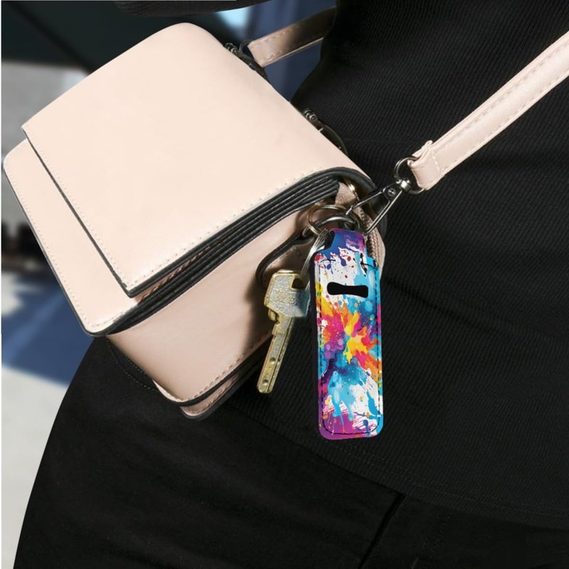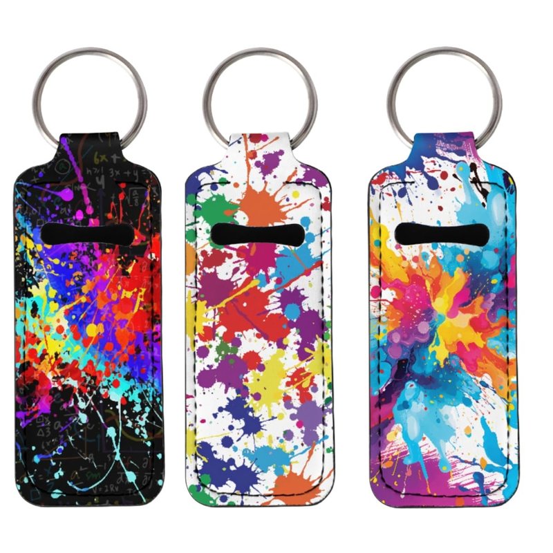 GLUDEAR Womens 3Pcs Lipstick Balm Holder Chapstick Holders 3D Print Keychain Holder Tube Holde Lipstick Tracker,Splash Oil Paint