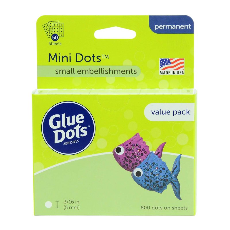 - INCLUDES: This pack of double-sided sticky dots includes 600 3/16-inch diameter Mini Glue Dots (50 double-sided adhesive sheets), providing you with plenty of clear glue for any project.