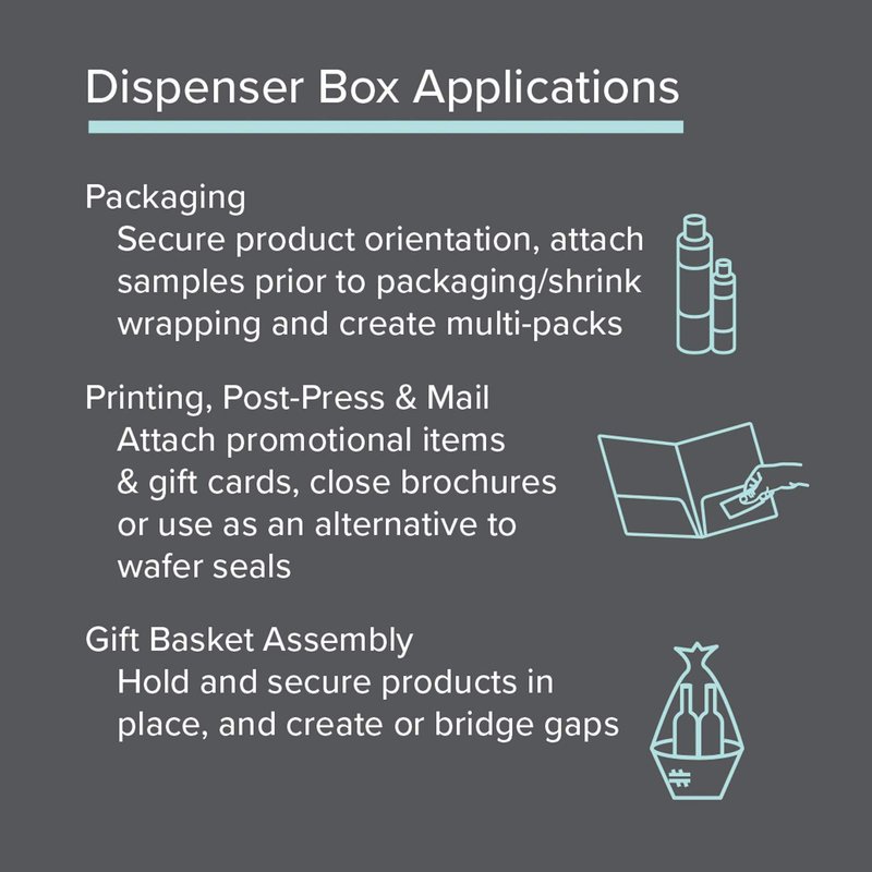 - Multipurpose Patterns: Our invisible, instant-bonding Glue Dots can be used to secure product orientation, attach samples or business cards, create multi-packs, repair hot melt failures,secure labels, outserts/inserts