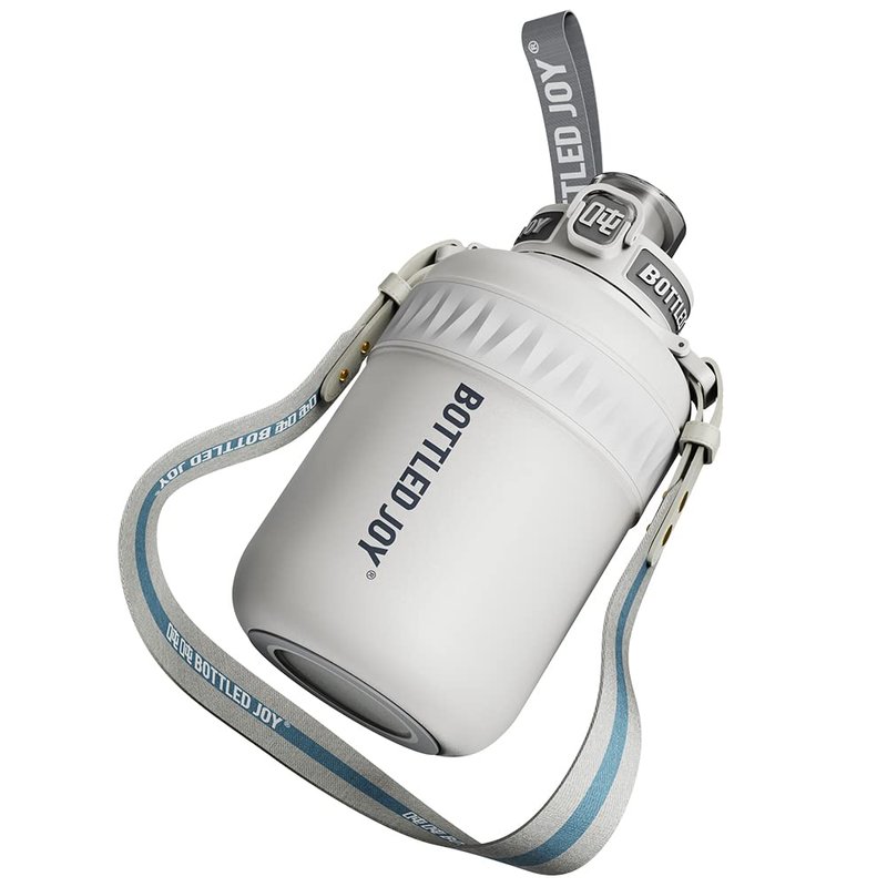 GLUG GLUG Insulated Stainless Steel Water Bottle for Sports and Travel, BPA-Free,Bottled joy with strap (grey, 32 oz)