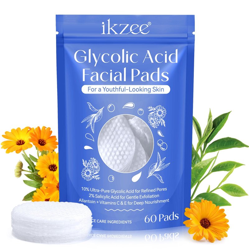 Glycolic Acid Facial Pads are crafted with a potent blend of 10% Glycolic Acid, 2% Salicylic Acid, Allantoin, Calendula, and Vitamins B3, C & E that exfoliate and resurface the skin.