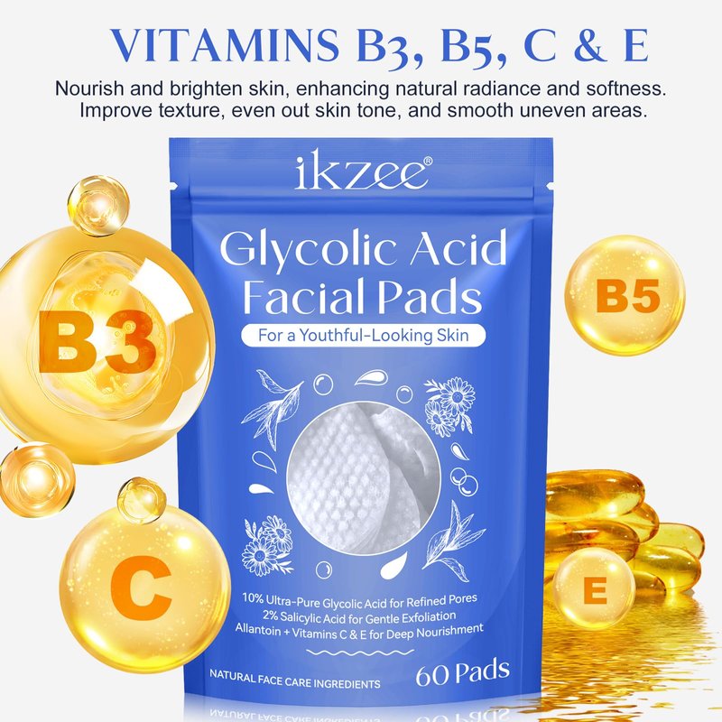 - POWERFUL GLYCOLIC ACID FACIAL PADS : These exfoliating pads, enriched with 10% Ultra-Pure Glycolic Acid for Refined Pores,2% Salicylic Acid for Gentle Exfoliation,while Vitamins E & C will leave your skin fully hydrated,provide Deep Nourishment and skin smoothing