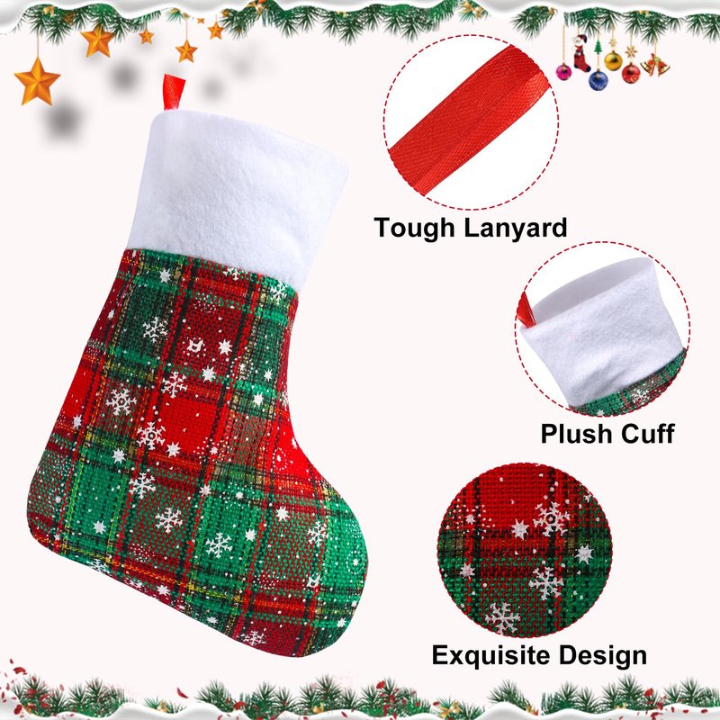 - Package Includes: you will get 24pcs small red and green buffola plaid Christmas stockings are included in total;comes with hanging loop for convenient use.