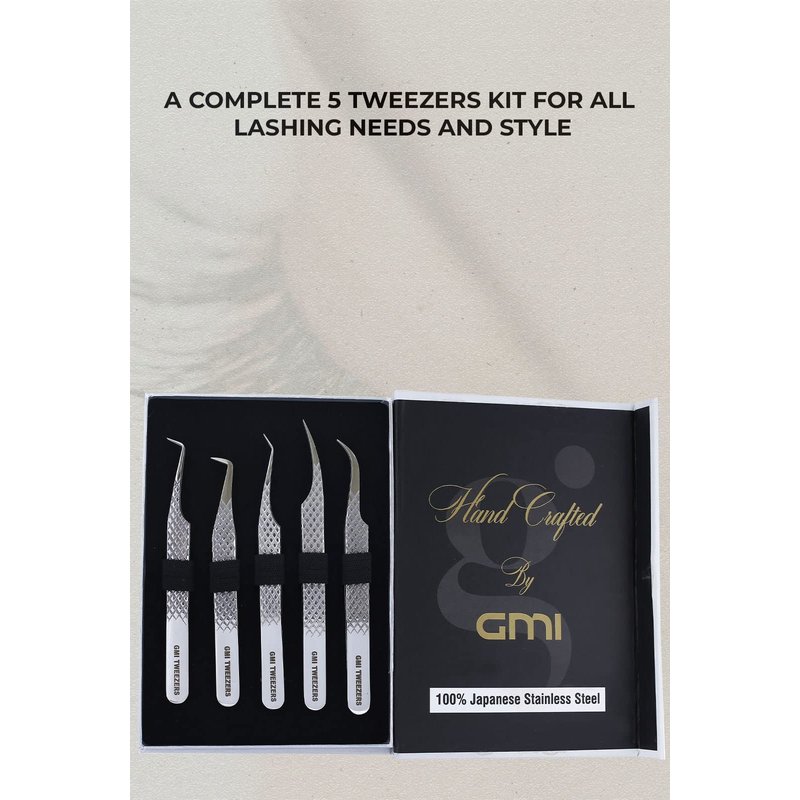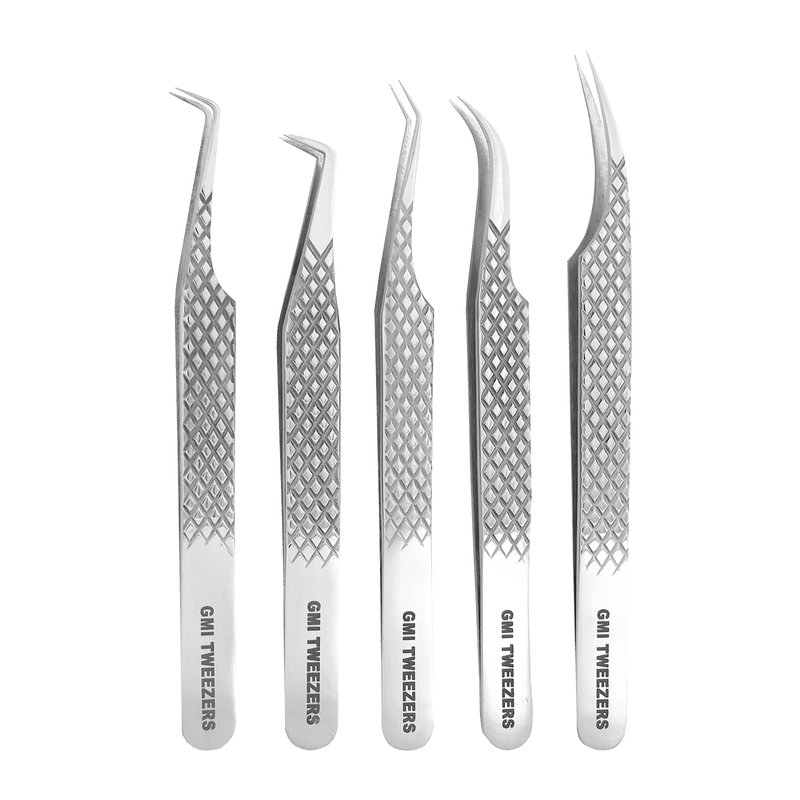 GMI Lash Tweezers - Set of 5 Eyelash Tweezers - Stainless Steel Eyelash Extension Tweezers - Multipurpose Lash Tweezers for Eyelash Extensions for Individual.