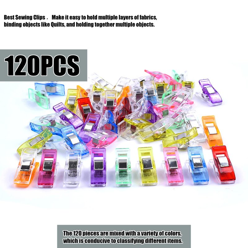 GMMA 120 Pcs Mix Colors Sewing Clips Acrylic Transparent Multifunctional Premium Quilting Clips,Storage Bag Clips, Sewing Clips for Fabric,Plastic Clips for Crafts