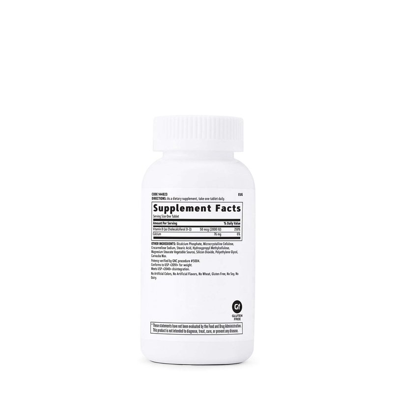 GNC Vitamin D-3 2000 IU Essential for calcium adsorption & strong bones Supports teeth & bones 180 tablets These statements have not been evaluated by the Food & Drug Administration. This product is not intended to diagnose, treat, cure, or prevent any disease.