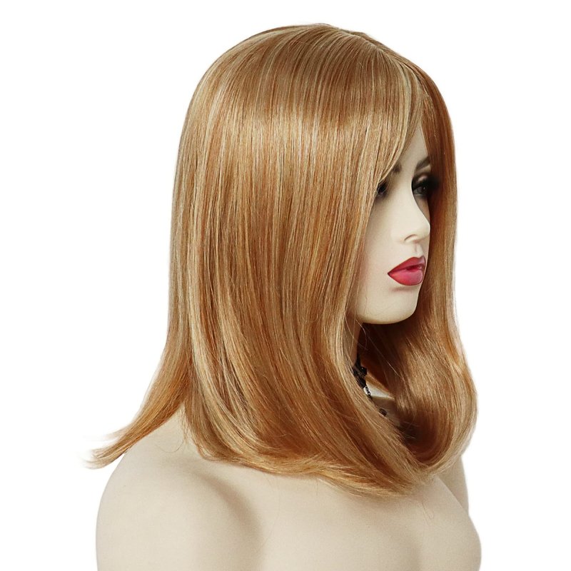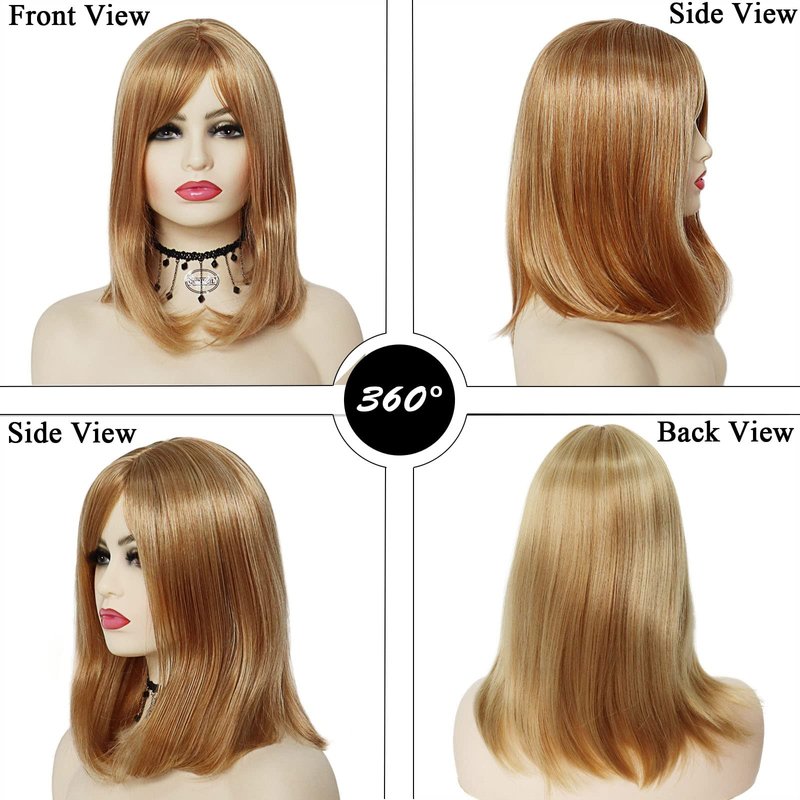 - GNIMEGIL Shoulder Length Strawberry Blond Hair Wigs for Women Heat Resistant Synthetic Hair Natural Straight Hairstyles Slightly Curled Full Wig Costume Party Makeup