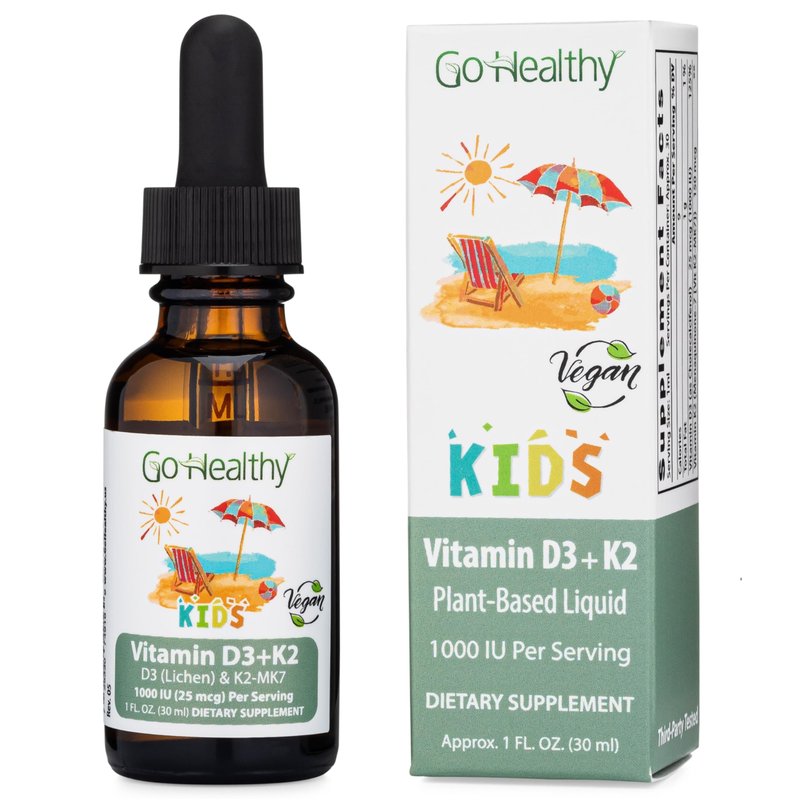 Go Healthy Vitamin D3 K2 Drops for Kids - Contains 25mcg (1000IU) Vegan Liquid Vitamin D & 150mcg Vegan Liquid Vitamin K2 (MK7) Per Serving, Gluten Free, Non-GMO, Vanilla Flavor - 30 Servings