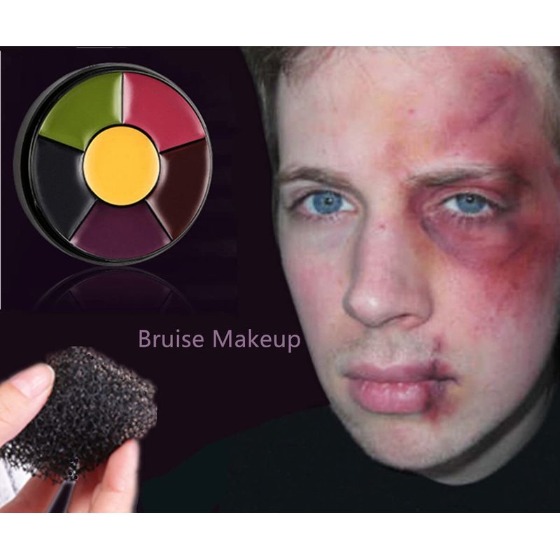 - Create Realist Looking Bruise --- This paste-like oil palette is rich in six colors,is used to create a realistic bruising effect.Suitable for Halloween party, Fancy Dress, Carnivals, Festival or TV program special effects, daily prank etc.Package include 1 pack bruise wheel;1 pack sponge.The scar temporary tattooes are great supplements for Zombie or other scar themed party makeup.