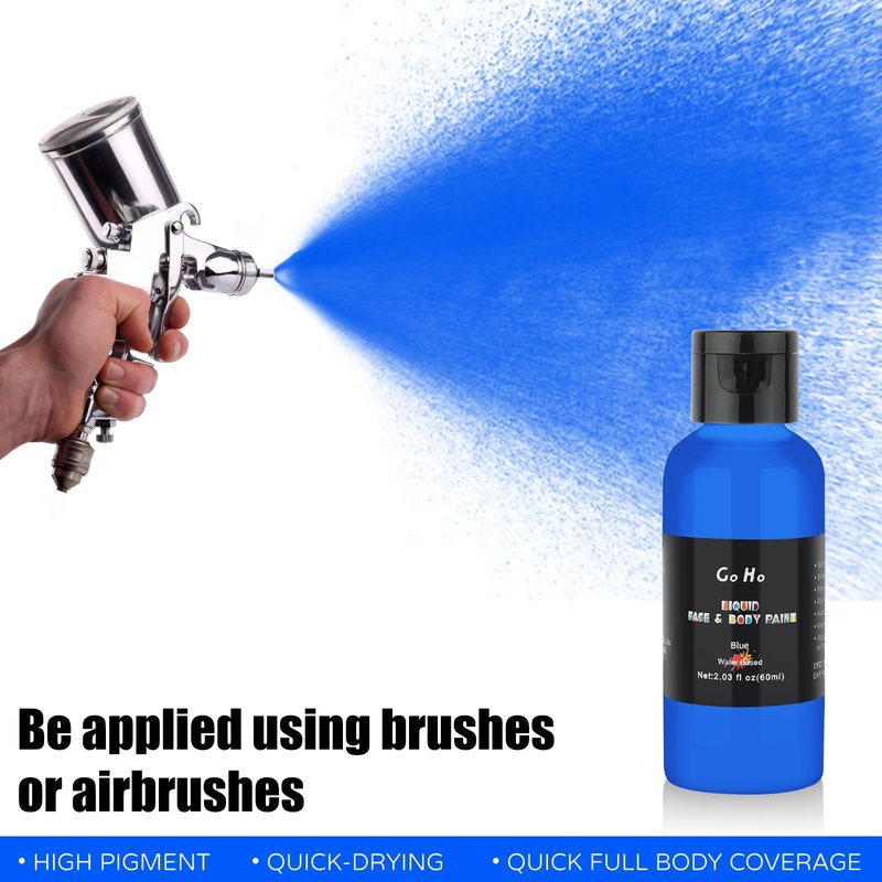 - 【Highly pigmented Blue Face Body Paint Liquid for Airbrush Makeup】 Liquid face body paint contains highly concentrated pigments, resulting in intense and vibrant colors. This allows for achieving dramatic effects in line with FX makeup, perfect for Halloween looks.
