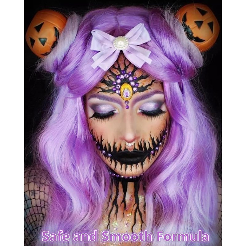- 【Easy to Dry & Highly Pigmented】Easy to dry, dry in about 5-10 minutes.Highly pigmented and smooth application. Suitble for all kinds of skins.Halloween makeup has become very simple, and it is also very convenient for children to use. it is lightweight and easier to carry when going out.
