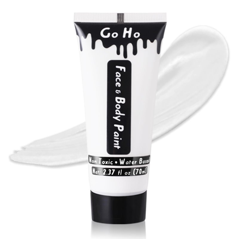 Go Ho Professional Cream White Face Paint Washable(2.37oz),Water Based White Body Paint Makeup,White Makeup for Halloween Cosplay SFX Goth Vampire Zombie Clown Makeup