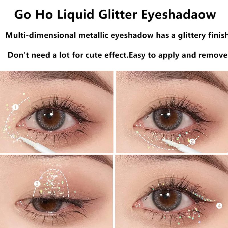 Go Ho White Metallic Glitter Eyeshadow Liquid,Shimmer Eye Shadow Bling,Glitter Eyeliner Sparkle Eye Glitter Stick,Loose Glitter Glue Korean Makeup for Women,03# White Shine