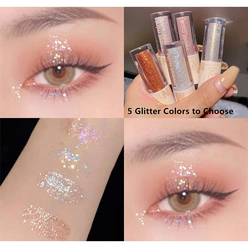 - 【Shine Glitter Eye Makeup】Combined with large and small glitter, like colorful lights flashing at different angles in the stars.Put a line across your eye with the brush, and use your finger to dab it out,and they are so glittery and pigmented.It goes on so smoothly and blend like a dream.It dry down perfectly and you just add a little to makeup the perfect shine.