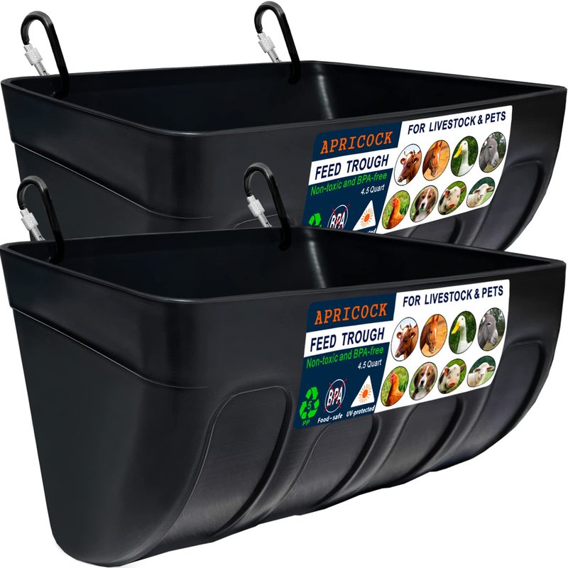 Goat Feeder, Hanging Duck Chicken Feeder, Fence Feed Trough, Goose Waterer Trough with Clips, Goat Supplies, 4.5 Quart, 2 Pack (Appearance patent product)