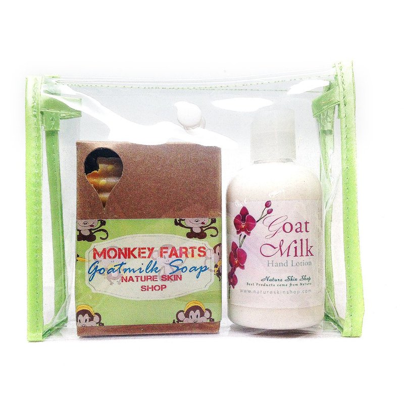 - Treat your special someone to the indulgent aromas and reviving elements of this 2- piece luxurious Gift set. This luscious goat's milk lotion infuses natural ingredients to hydrate and replenish skin's moisture. Don't let the name fool you, 'Monkey Farts' is a natural goat's milk soap scented with fresh notes of banana, sweet grapefruit, mandarin orange, kiwi, coconut cream and more. With a thick creamy lather, gently cleanse skin with this fruity soap