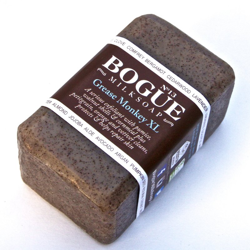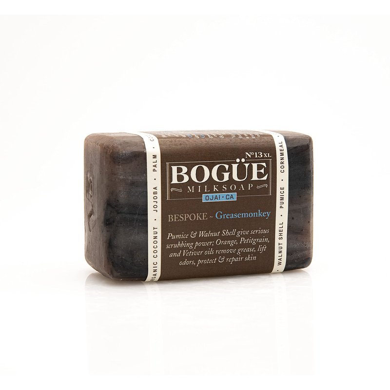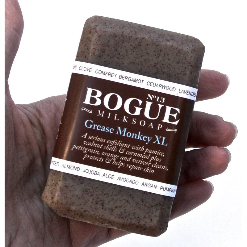 A hard working soap with 3 exfoliants, fine pumice to get in under the nails, ground walnut shell and cornmeal to really scrub off grease and dirt and return to natural freshness. Essential oils of Petitgrain and Vetitver help lift grease while also soothing cut and abrasions making No.13 the ultimate mechanic or any greasemonkies soap. Bogue Milk Soaps are all made with organic plant based oils, goat milk, and only pure essential oils, infused oils and herbs for scent and skin nourishment. There are no artificial additives, preservatives, dyes or fragrances. Goat milk has long been known for its moisturizing qualities, a natural emollient that soothes your skin and together with pure vegetable oils, produces a creamy, luxurious lather not found in other soaps.