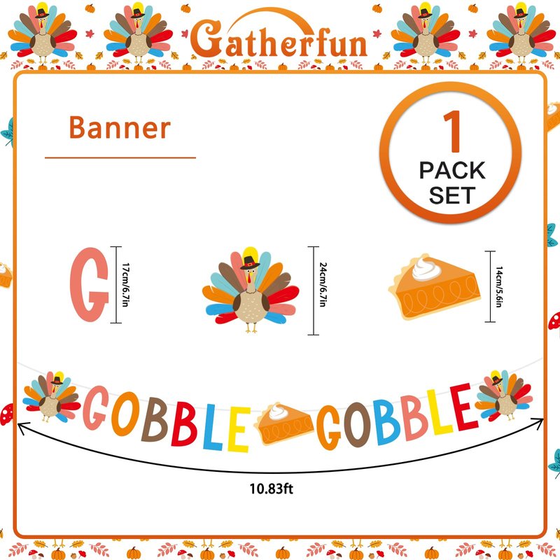 - Our Thanksgiving Party Decorations includes a colorful and festive 10.83 feet long "Gobble Gobble" banner, encapsulating the warm and joyous spirit of Thanksgiving.