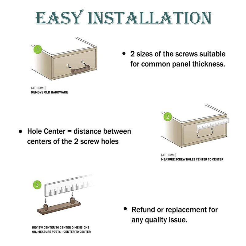 - Carefully Packaged - Each pull is individually wrapped and bagged to avoid the scratch and protect the beautiful finish. Three sizes of screws for each handle(8-32*25mm & 8-32*35mm & 8-32*40mm).