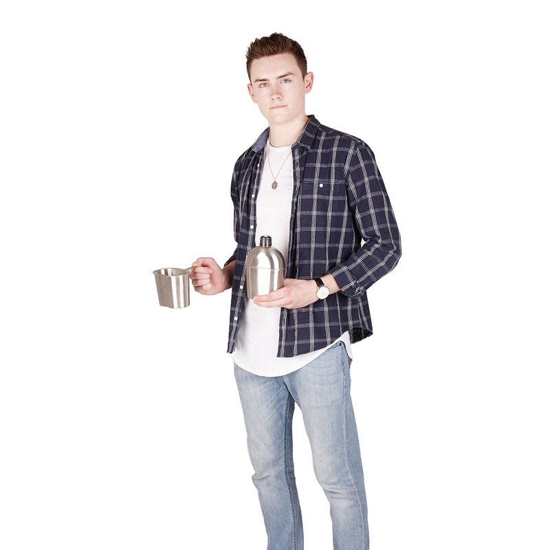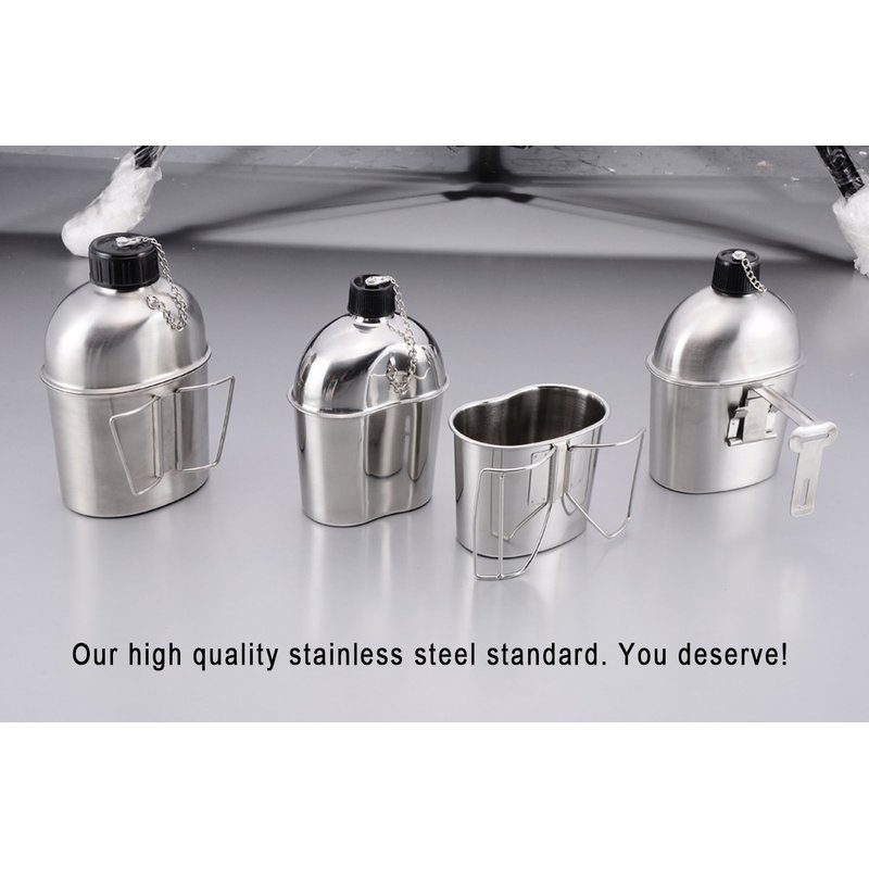 Goetland Stainless Steel WWII US Military Canteen Kit 1QT with 0.5QT Cup Nylon Cover G.I.